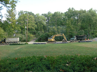 I have been neglecting Mennonite Girls Can Cook (blog), so when I checked it today, wouldn't you know, a recipe and picture for a peach loaf that looks scrumptious. I think I will make it for the guys on the crew doing Cooke Rd. They are the best team of workers I have ever seen--here before dawn and still here after 8:00 pm. I am sure the project will be finished on or before time and it will be well done. It looks choreographed--this dance of large equipment. It is fun to watch and Bella and Andy and I do a lot of watching. 9/7/2012